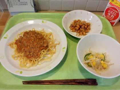 今日は、6年生からリクエストのあった「ジャージャー麺」と「大豆とじゃこの甘辛あげ」です。