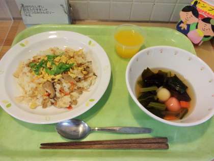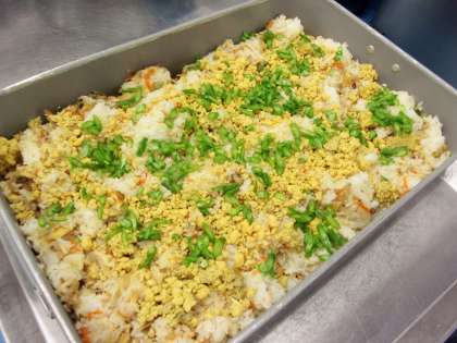 今日は、お祝いとしてちらしずしと紅白の白玉が入ったすまし汁を作りました。