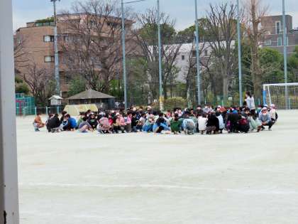 3月の避難訓練は、子どもたちには「予告なし」で行いました。清掃中に大きな地震という設定で行いました。サイレンの音とともに、ほとんどの子どもが瞬時に反応し、指示をよく聞いていました。しかし、一部の子どもたちにおしゃべりがありましたので、私は「合格」は出しませんでした。