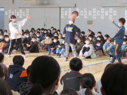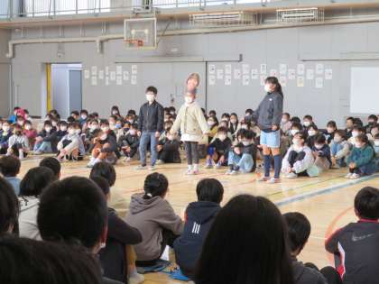 トップバッターは4年生です。6年生担任の先生の口癖と担任から見たクラスの良さを、明るく元気に笑いを取りながら発表しました。