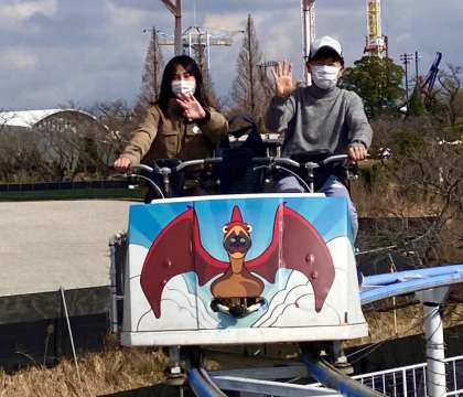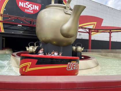 私は、ふたり乗りの空飛ぶ自転車型ライドで空中散歩「プテラサイクル」にチャレンジです。「スプラッシュU.F.O.」は、日清焼そばU.F.O.が出来上がるまでの流れをゴムボートに乗って体感するずぶ濡れ必至の急流下りアトラクション。お化け屋敷は「ひゅ〜どろ」です!
