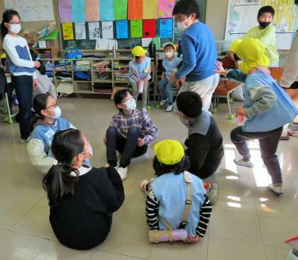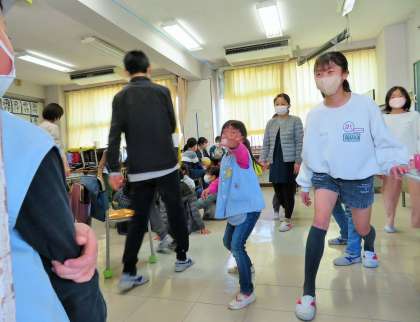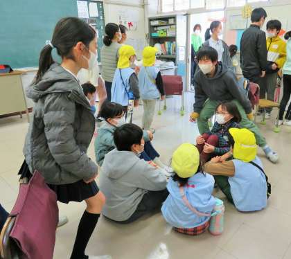 教室では「ハンカチ落とし」「だるまさんが転んだ」などで、交流を深めました。