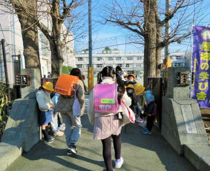 今日は「優郷の学び舎」あいさつ運動の2日目です。1年生が担当で、正門と南門に分かれ、登校して来る子どもたちへ気持ちのよいあいさつを投げ掛けてくれました。「ぺこり」とお辞儀もきちんとできていました!