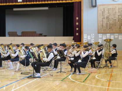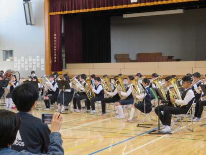 保護者の方々、応援に駆け付けた先生方を前に、金管バンドを通して育ってきた心の成長、伝統の重さなどを立派に発表しました。