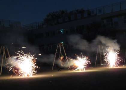 「6年生卒業イベント」のフィナーレは打ち上げ花火鑑賞会です。風があり、恵まれた条件ではありませんでしたが、松パパクラブの皆さんが6年生のために必死に打ち上げてくださいました。花火が上がるたびに子どもたちの歓声が湧きました。私の後方からは「すごーい!」「命がけだねー!」という声が上がっていました。最後に、子どもたちから「ありがとうございました!」の言葉と感謝の拍手が沸き起こりスペシャルイベントは幕を閉じました。