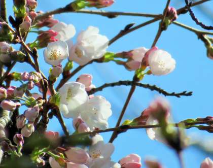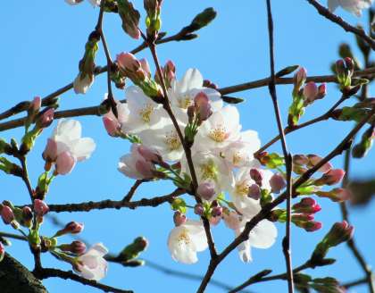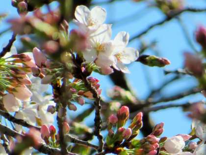 春本番の陽気が続いています。靖国神社にある東京の桜(ソメイヨシノ)の標本木が開花し、本日、気象庁による開花宣言が行われました。松丘小学校で日当たり抜群の給食室裏の桜も昨日から花が開いていました。松丘桜の開花宣言です!