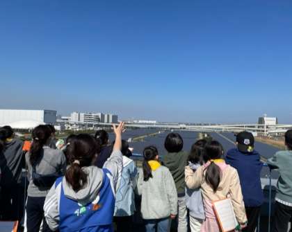浮島処理センター屋上の展望スペースは、メガソーラーや羽田に離発着する飛行機が間近に見られる最高のロケーションでした!