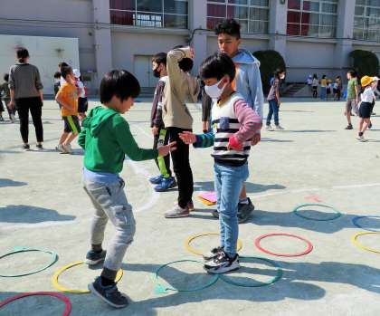 たてわり班ごとに集まりゲームの説明、そしてゲームのスタートです!