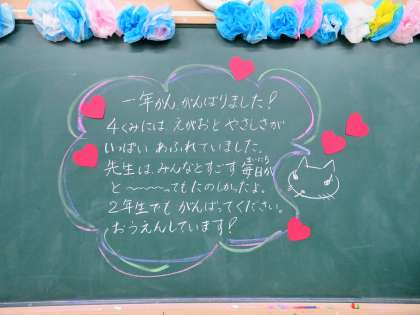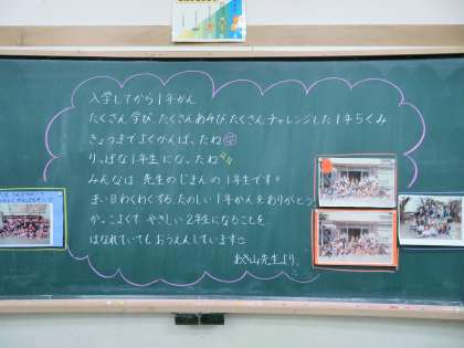 担任の先生からの温かいメッセージが、子どもたちを迎えていました。ここに紹介するのはその一部です。