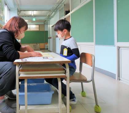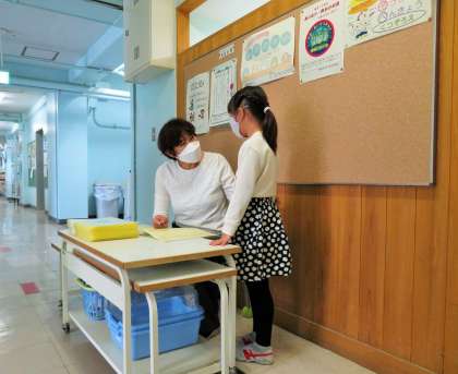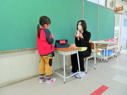 担任の先生から修了証が手渡されました。修了証とは、その学年の学習すべきことを修了したことを証明するものです。担任の先生が教室や廊下で、一人一人に言葉を添えながら渡しています。