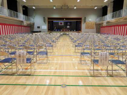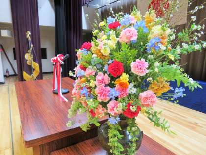 5年生の子どもたちと教職員が、心を込めて会場準備を行いました。子どもたちの思い出に残る卒業式にしたいと思っています。心温まるお祝いのメッセージが体育館入口にあります。