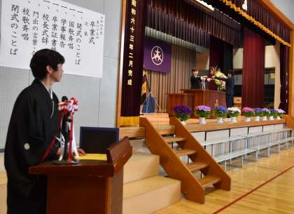 話を聞く姿勢も立派で、松丘小学校の卒業生にふさわしい態度です。一人一人の子どもたちに、卒業証書を手渡すことができて幸せでした。