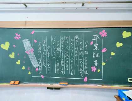 ご卒業おめでとうございます。この1年間、子どもたちや保護者の皆様のおかげで幸せな学校生活を送ることができました。これまでのご支援に心から感謝申し上げます。本当にありがとうございました。