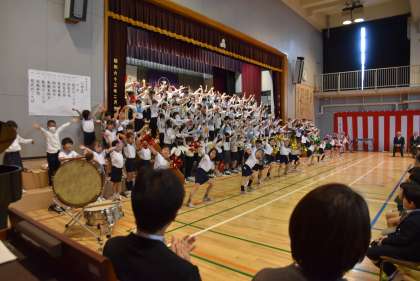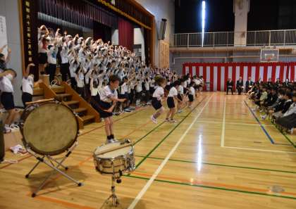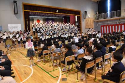 2年生による「歓迎のことば」です。心のこもった呼びかけや学校生活の様子、「こいぬのマーチ」の合奏をしている姿に、1年間の成長を感じました。