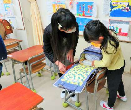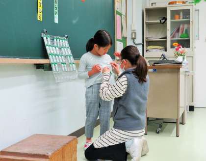 1年生を温かく、やさしくアシストしている6年生の姿がありました。
