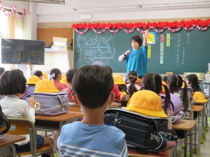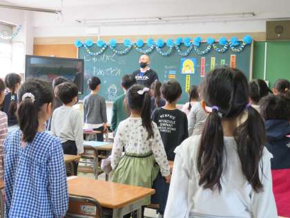 それぞれの教室に入りました。落ち着いて、姿勢正しく先生の話を聞いている子どもたちに感激です。