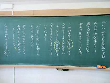 4/7 黒板には温かいメッセージが・・・4