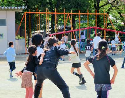 ジャングルジムで先生が一人遊んでいます。どこにいるかわかりますか?