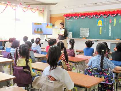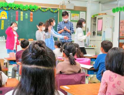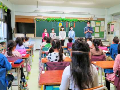 お世話になった6年生に、きちんと「ありがとうございました!」と、あいさつのできる1年生の子どもたちです。