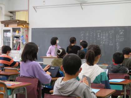 写真は、環境委員会、図書委員会、自然委員会の様子です。