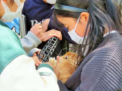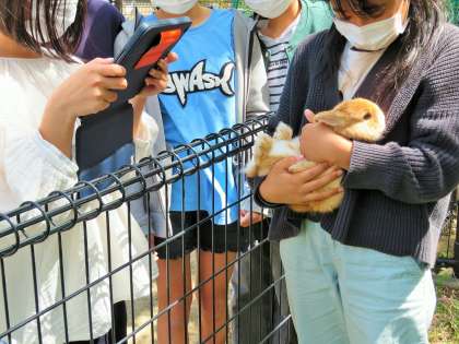 短時間ですが、見学に来た子との「ふれあいタイム」です。さっそく広報委員会の子も撮影に来ていました。