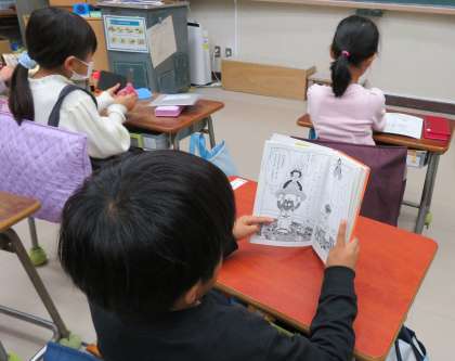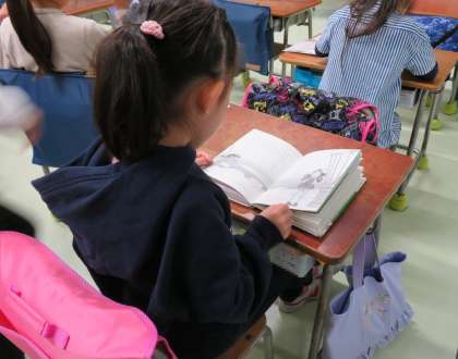 朝の支度が終わった子たちは、本を読んだり折り紙を折ったりしています。