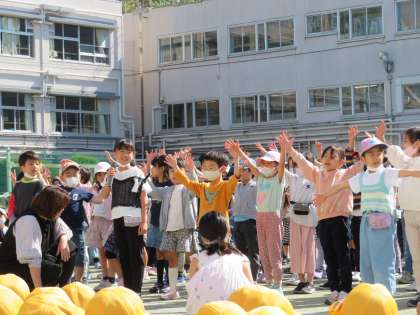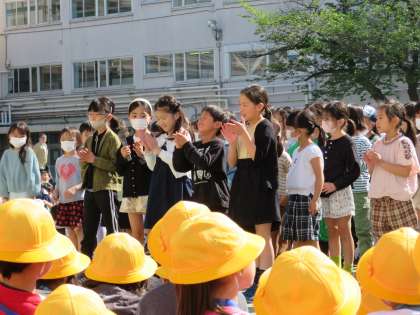 2年生から6年生が、1年生へのメッセージと心を込めてプレゼントを作りましたので紹介しました。