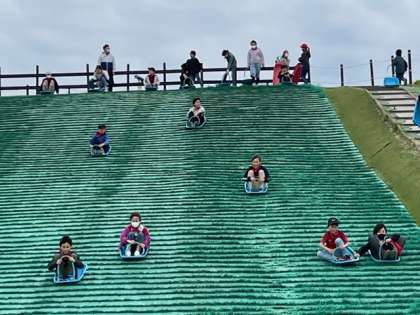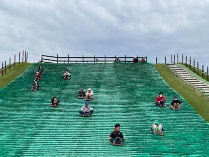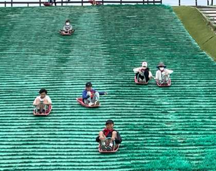 最大斜度18度、全長44mの「芝そりゲレンデ」です。とっても楽しそうです!