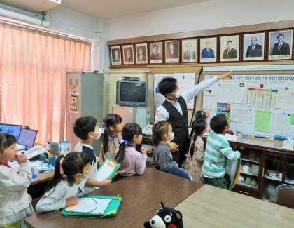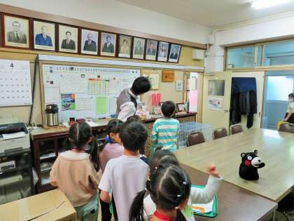 「ここが校長室で、校長先生がお仕事をしています!」などと、わかりやすく説明をしていました。2年生が良きお手本となってあいさつをしているので、1年生にもとってもよい学習となりました。