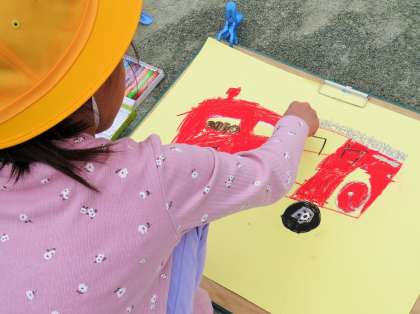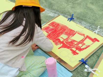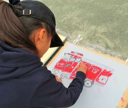 どの子も一生懸命描いています。できあがった作品を楽しみにしていてください!