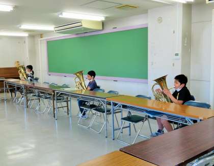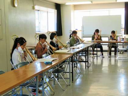 表彰式の音楽として馴染み深い「得賞歌」、「校歌」などの練習にも取り組んでいます。