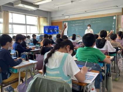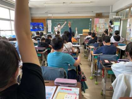 東京都では教員になると初任者・2年次・3年次の若手研修が必須となっています。今日は清水教諭が家庭科の研究授業を行いました。家庭科の「ひと針に心をこめて」という単元で、初めて裁縫セットを使用しての学習です。子どもたちは、とっても意欲的に学習に取り組んでいました。