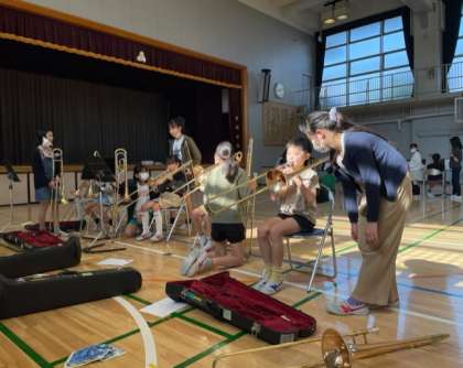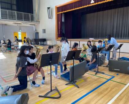 金管バンドは昨日から「4年生の体験入部」がはじまっています。5,6年生は張り切って4年生をお迎えしています。