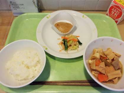 ふきをおいしく仕上げるために、調理員さんが一本一本丁寧にスジを取りました。
