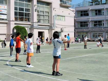 運動会に向けての朝練習に取り組んでいます。今日は「応援団」(5,6年生)と「中学年リレー」(3,4年生)の朝練習です。