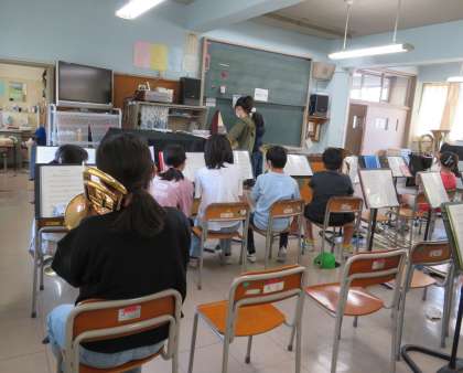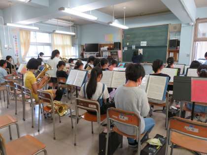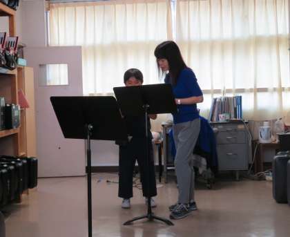 先輩が後輩にていねいに教えている姿が素敵です。明日の演奏、楽しみにしています!