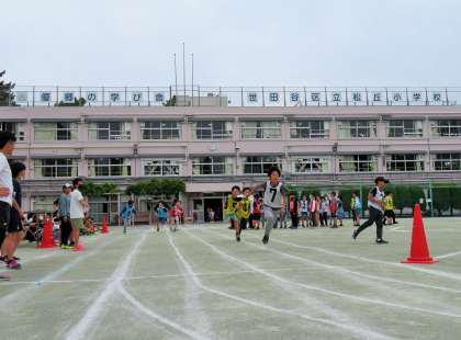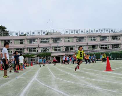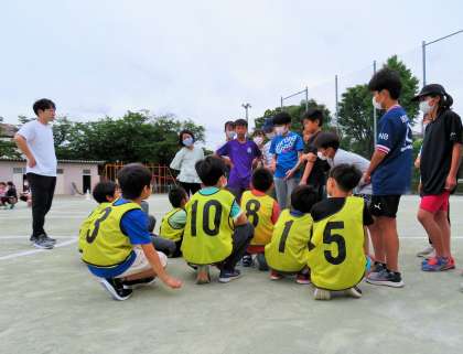 アンカー選手のゴール後は、高学年リレーの選手からアドバイスをもらっていました。