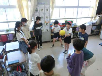ゲームの説明をして、さぁゲーム開始です。もちろんリーダーは6年生です。1年生から6年生まで、どの子も楽しめるゲームを考えるのはなかなか大変なことです。