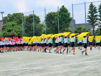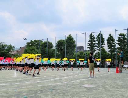 和をイメージした音楽に合わせ、体を使って表現します。実行委員を中心に練習したり、クラスで表現の内容を考えたりしました。今まで学んできたことを生かした様々な表現の仕方を、ぜひお楽しみください。