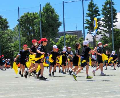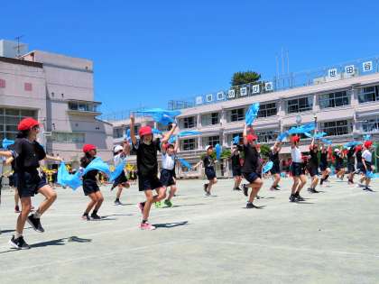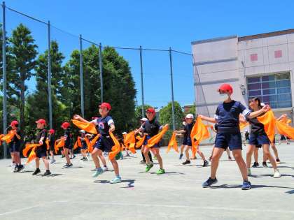 後半のダンスは、思わず子どもたちも笑顔になる、あの有名なダンスです。ぜひ、皆さんご一緒に『♪オーレー、オーレー!松小サンバ〜!』