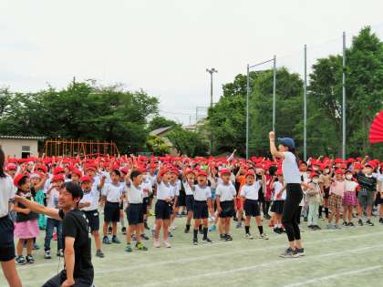 3年ぶりに復活した運動会の歌「ゴーゴーゴー」です。1番は赤、2番は白、3番は赤白同時に歌を歌い元気さを競いました!