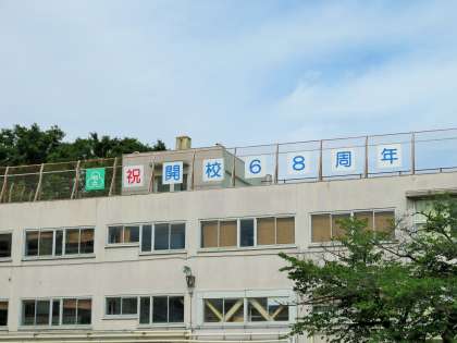 屋上にある周年看板が更新されました。6月14日で68歳「68周年」になりましす。毎年、同窓会長が新しい看板を準備してくださります。本当にありがたいかぎりです。ありがとうございました。