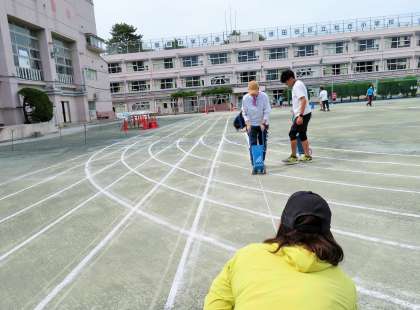 コースのラインも一本一本、先生方が心を込めて引き、準備万端、子どもたちの舞台を整えました。