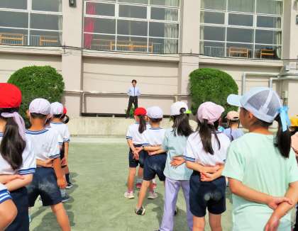 (2)応援団の子どもたちが暑い中、声を張り上げ続けていて、応援リーダーとして本当によく頑張っていました。5,6年生の短距離走の時には、ずっと「ゴーゴーゴー」を歌い続けて応援していたクラスがありました。そして最後の高学年リレーの時には、応援団と一体となって、会場全体がスタートからゴールまで「フレーフレー◯組!」と応援していました。ものすごい一体感で感動しました。本当によく頑張りましたね。