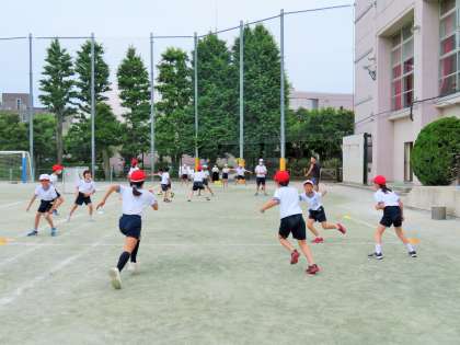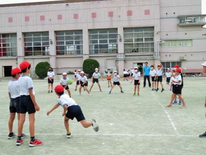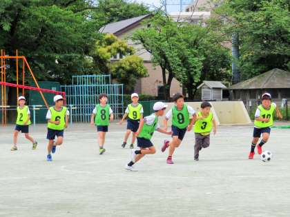 写真は、ミニサッカー、ドッジボール・体育クラブの様子です。