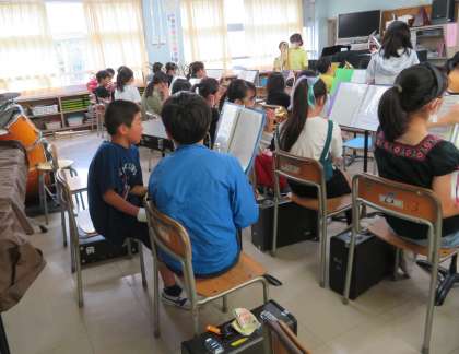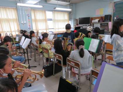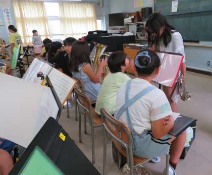 金管バンドは運動会の翌週から休みなしで活動しています。「4年生の体験入部」を経て新たに入部してきた4年生の育成がメインです。