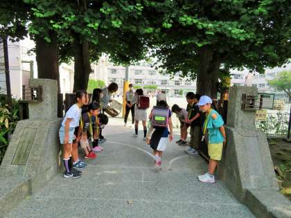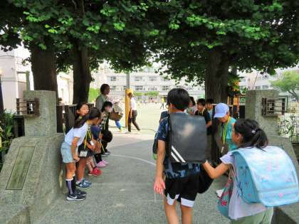 写真は、3年生「優郷の学び舎あいさつ運動」の様子です。