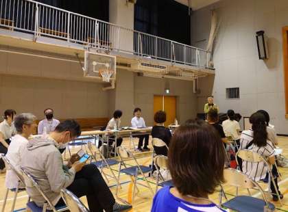 今年度の避難所運営委員会を行い、初期対応や組織毎の活動内容、そして必要物品の確認等を行いました。避難所が開設された場合は、運営本部長が中心となり、「総務・情報」「避難所」「給食・物資」「救護・衛生」の4つの組織に分かれ活動をすることになっています。