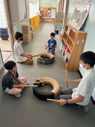 4年生はタイヤを使ってリズムをしっかり掴む練習。5年生と6年生は寄せ太鼓を格好良く見せる溜めや振りの練習など、本番に向けて頑張っています。