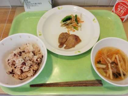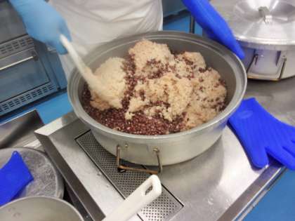 給食室でも、明日の開校記念日をお祝いして赤飯を炊きました。